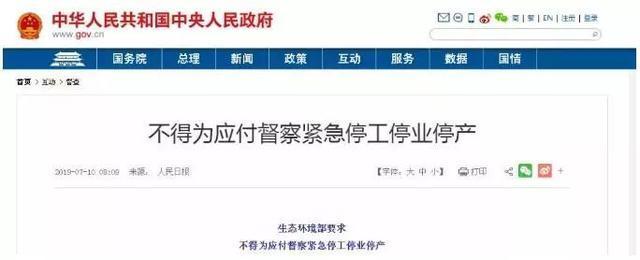 环境部发文件明确,被督察?。ㄊ校?、集团公司不得为应付督察而不分青红皂白地采取紧急停工停业停产等简单粗暴行为,以及“一律关?!薄跋韧T偎怠钡确笱苡Χ宰龇?。